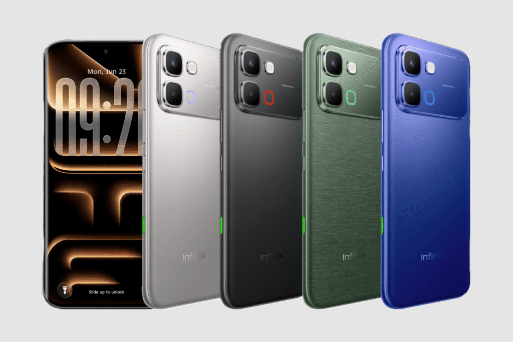 Colores para todos los gustos: Infinix no escatimó en el armario. El acabado se llama «Pearl Light Ripple Shadow» (suena poético, ¿no?) y llega en cuatro presentaciones: